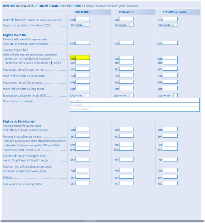 Si votre activité relève des prestations de services BNC, vous devrez déclarer votre CA dans la rubrique « 5HQ » (déclarant 1) « revenus non commerciaux professionnels – régime déclaratif spécial ou micro BNC »