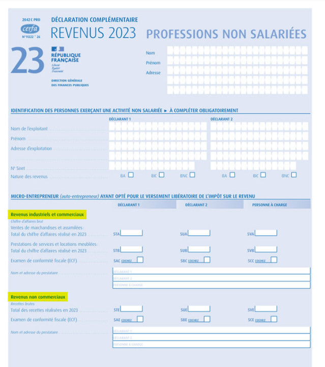 • La déclaration de votre CA se fait sur la « 2042 C-PRO » rubrique « Micro-entrepreneur ayant opté pour le VFL ». Vous devez distinguer vos CA par activité